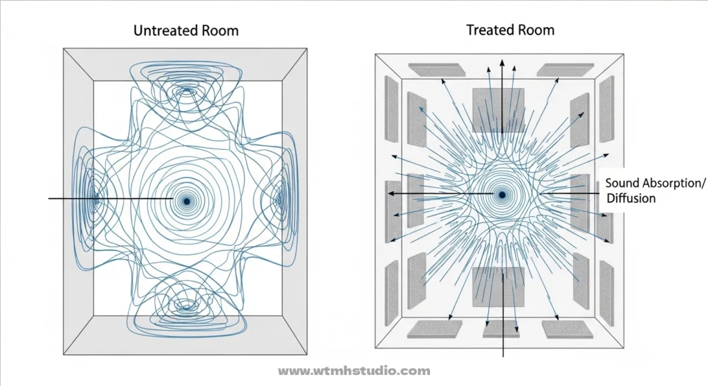 Your room acoustics represent the single most important factor in the studio monitors vs headphones decision. Monitors are only as accurate as your room allows. Headphones bypass room issues entirely.